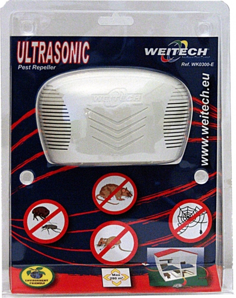 The WEITECH ultrasonic pest repel products emit complex sounds of a very high frequency and of a high intensity. Ultrasounds are inaudible for people but very audible to rodents and most insects. The permanent fluctuation of the frequencies and intensity of the ultrasounds affects the nervous system of these pests, disturbs their communicative and social skills and inhibits them from detecting their natural predators. All or some of these factors make the protected rooms extremely inhospitable for the pests and they have no choice but to leave the area.