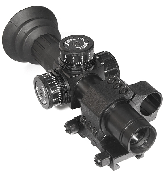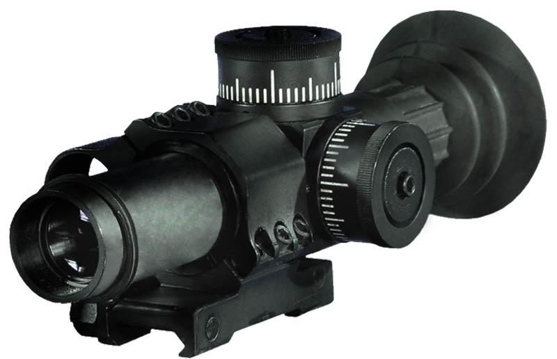 PO 3.5×17 – wide angle scope with Illuminated rangefinding reticle. The scope is nitrogen purged and waterproof. It can be mounted to any weapon with Picatinny rail.